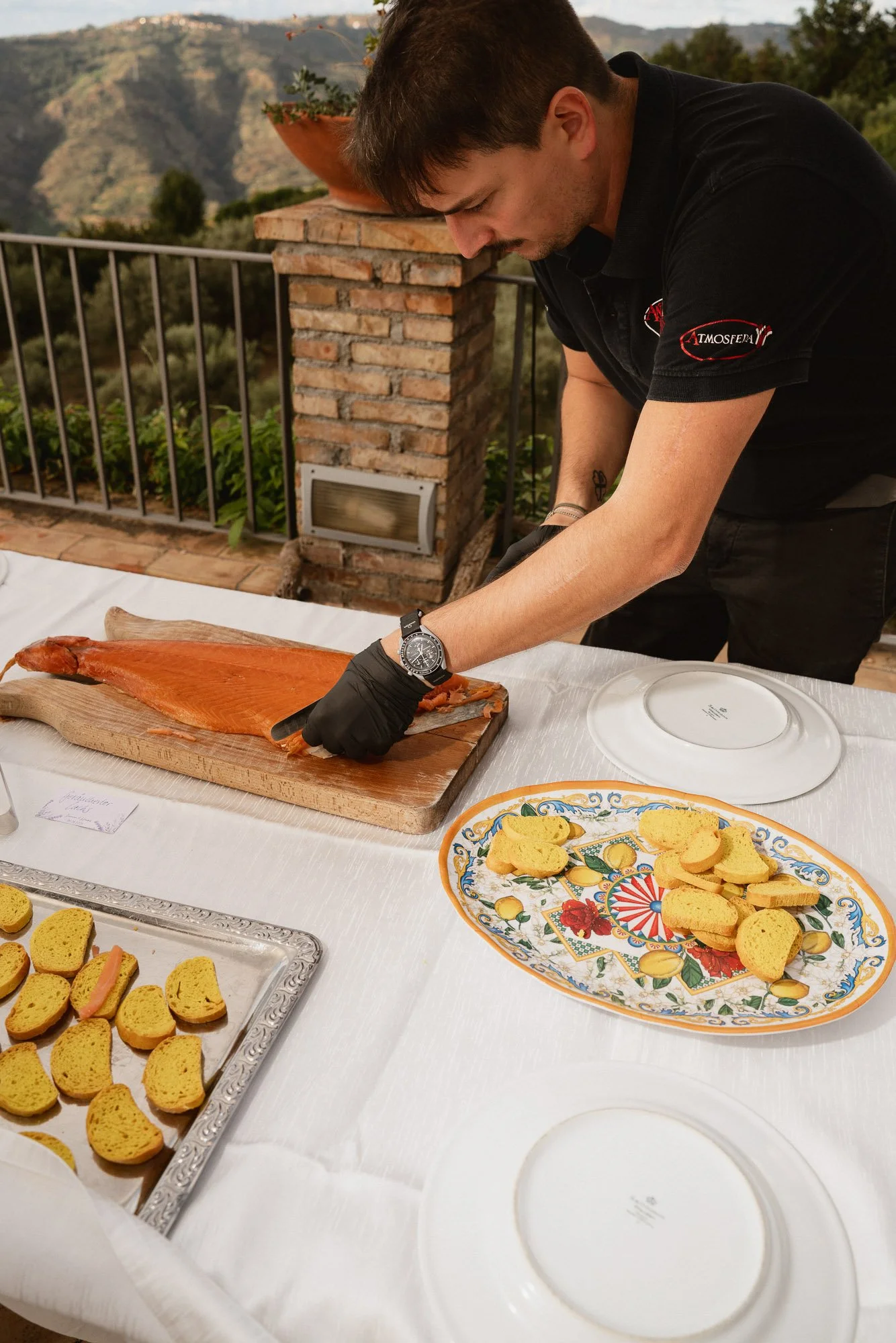 Der Tag begann im Kloster, umgeben von Familie und Freunden, Gelächter und dieser besonderen Mischung aus Ruhe und Vorfreude. Nach dem Ja-Wort ging es weiter zu Antica Filanda, dem Michelin-Star Restaurant, wo sizilianische Küche, lebendige Musik und gute Gespräche den Abend füllten. Ein Tag voller Emotionen, Genuss und unvergesslicher Momente. Ein kleiner Einblick….