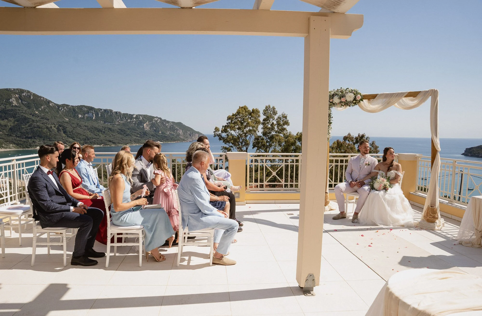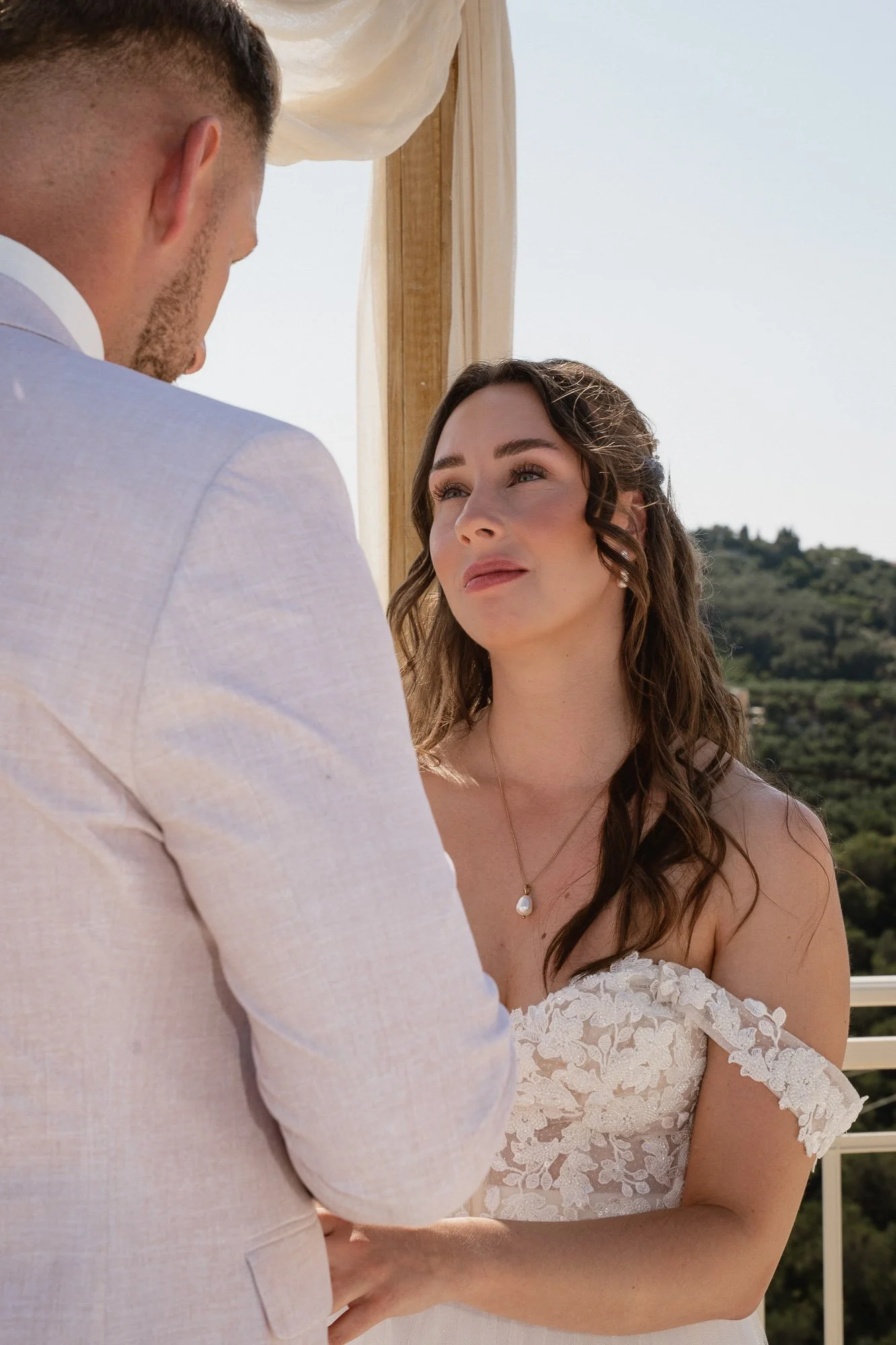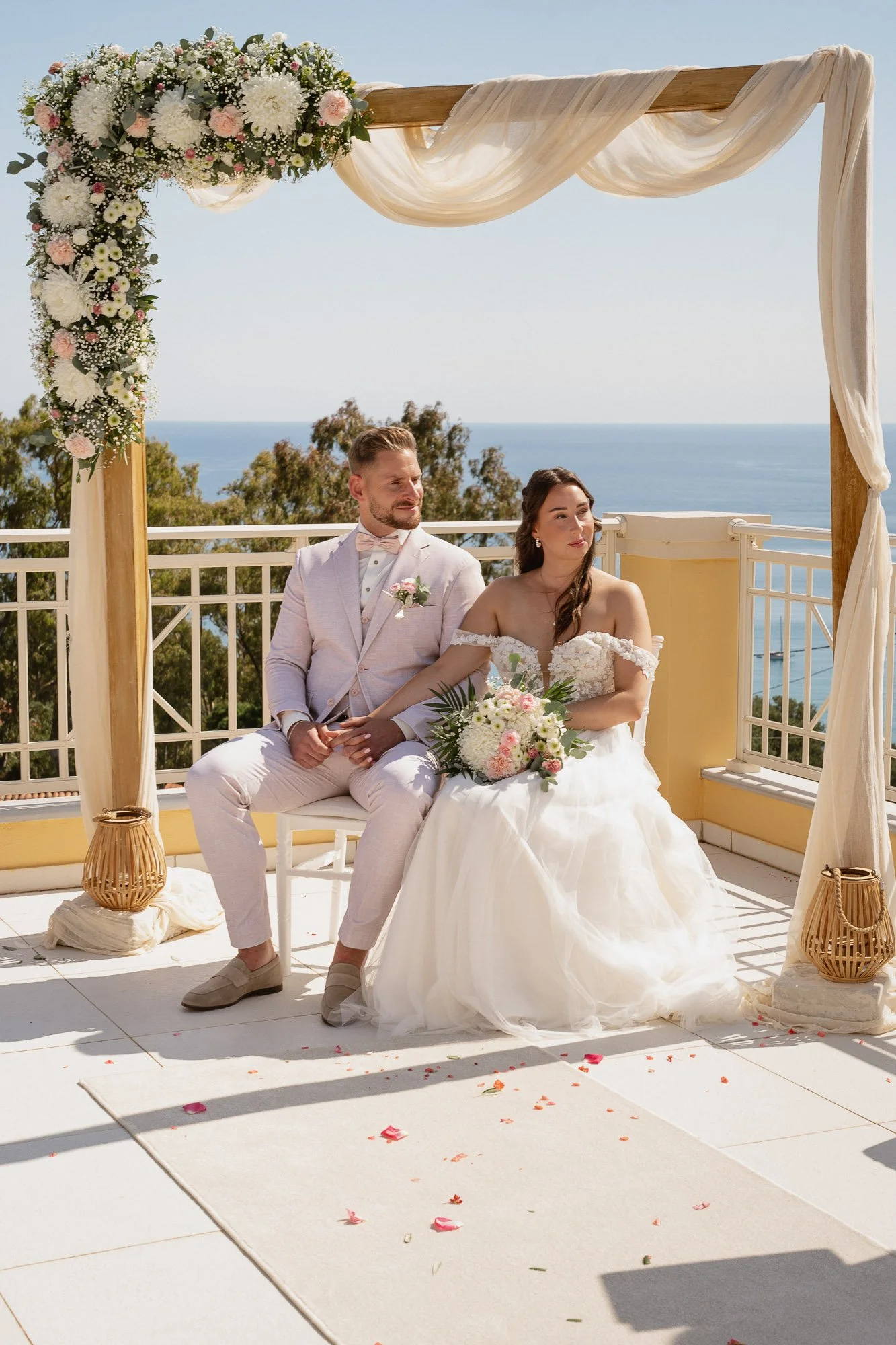 Vanessa und Robin feierten ihre Liebe auf Korfu, in einer kleinen Villa direkt am Strand, umgeben vom Rauschen des Meeres und den Felsen im Hintergrund. Das ganze Wochenende fühlte sich an wie ein einziges großes Familien und Freundesfest, vom ersten Ankommen über die Stunden am Pool bis zur Fahrt zur standesamtlichen Trauung. Die freie Trauung am Meer war atemberaubend, voller Gefühl und Nähe. Danke euch beiden für euer Vertrauen in uns und für dieses unvergessliche Erlebnis
