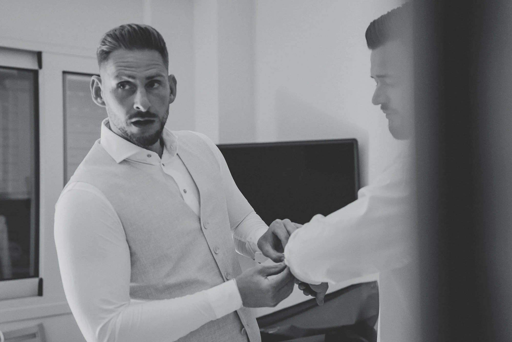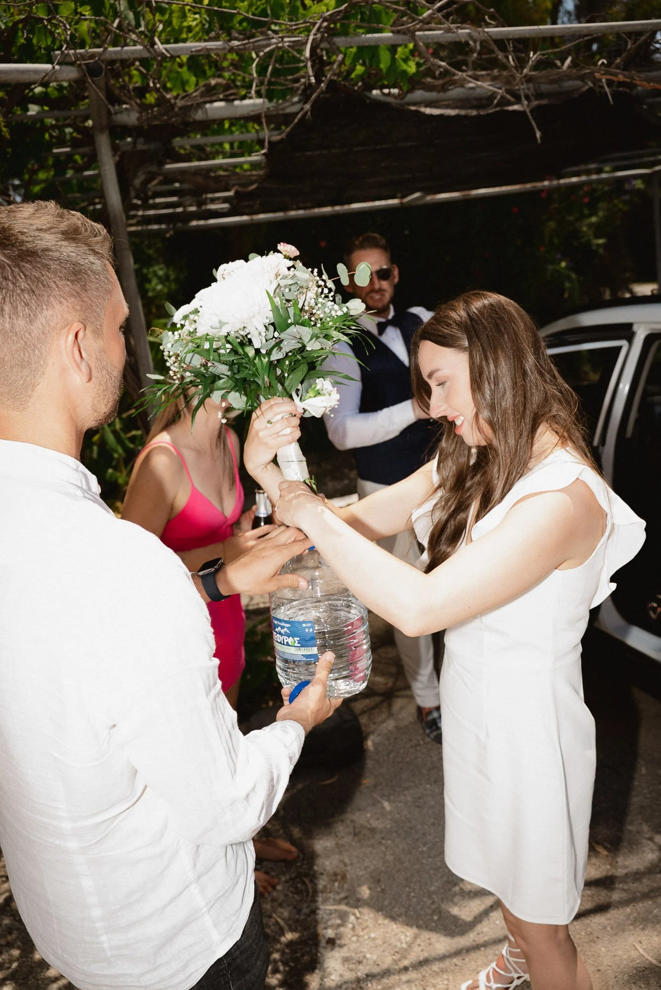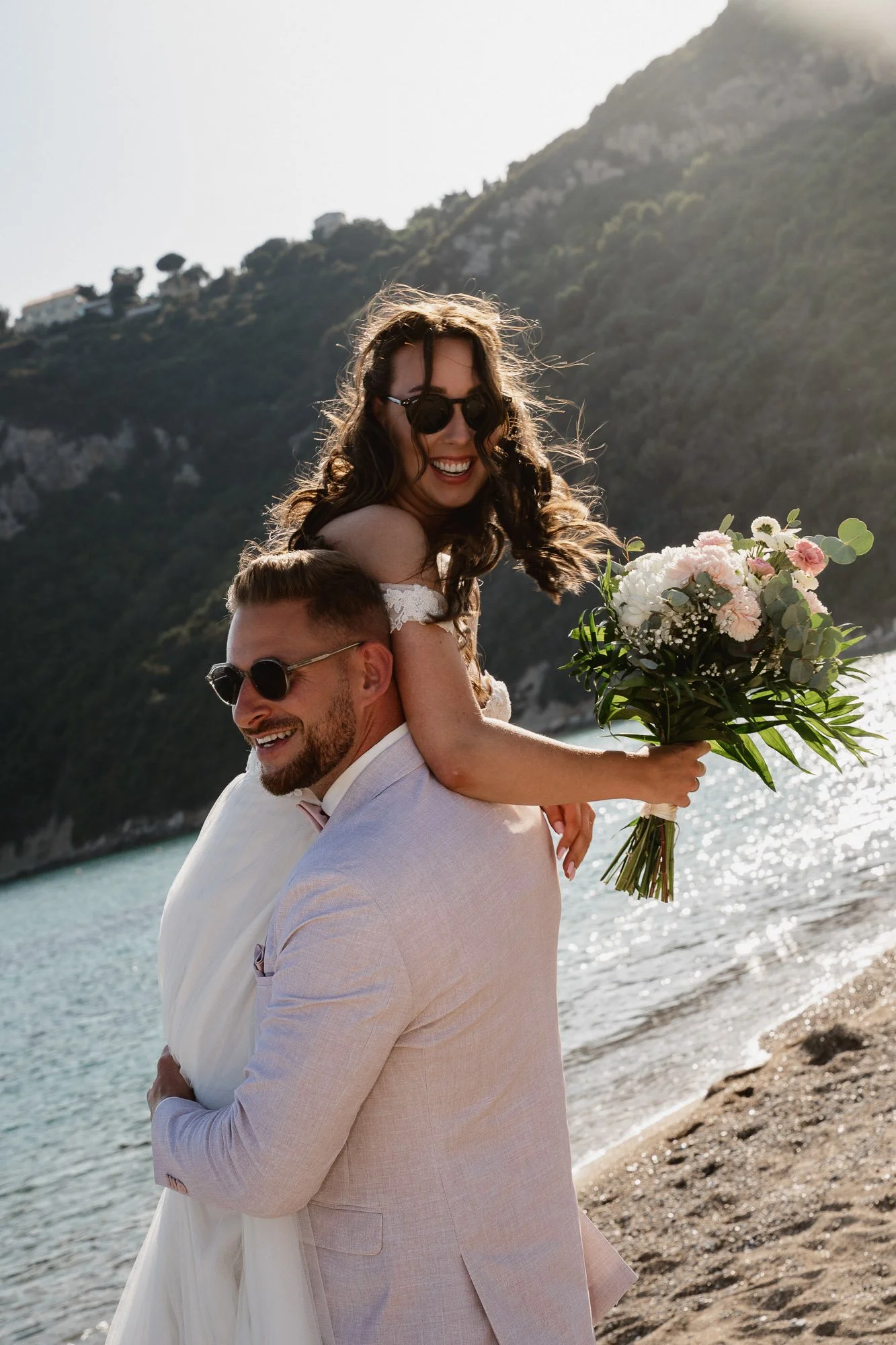 Vanessa und Robin feierten ihre Liebe auf Korfu, in einer kleinen Villa direkt am Strand, umgeben vom Rauschen des Meeres und den Felsen im Hintergrund. Das ganze Wochenende fühlte sich an wie ein einziges großes Familien und Freundesfest, vom ersten Ankommen über die Stunden am Pool bis zur Fahrt zur standesamtlichen Trauung. Die freie Trauung am Meer war atemberaubend, voller Gefühl und Nähe. Danke euch beiden für euer Vertrauen in uns und für dieses unvergessliche Erlebnis